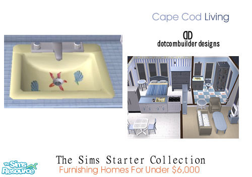Yellow sink with starfish and shells.