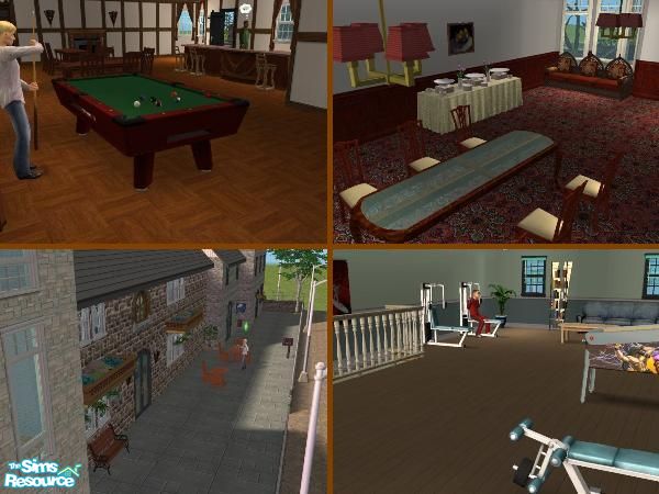 Community lot based on a stretch of the Leeds-Liverpool Canal. Includes bar with buffet and gym. Some units left unfurnished to do with as you wish. Includes 3 custom walls by little old me.