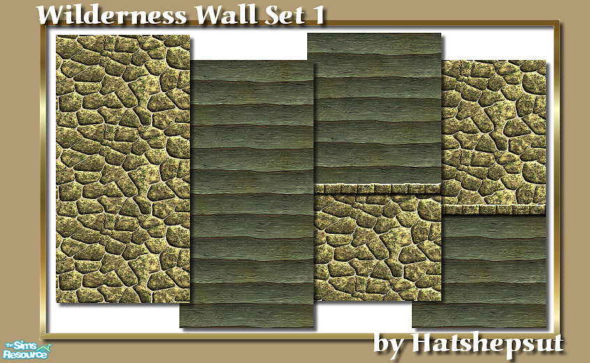 Sims 2 — Wilderness Wall Set 1 by hatshepsut — A set of mixed timber and stone walls.