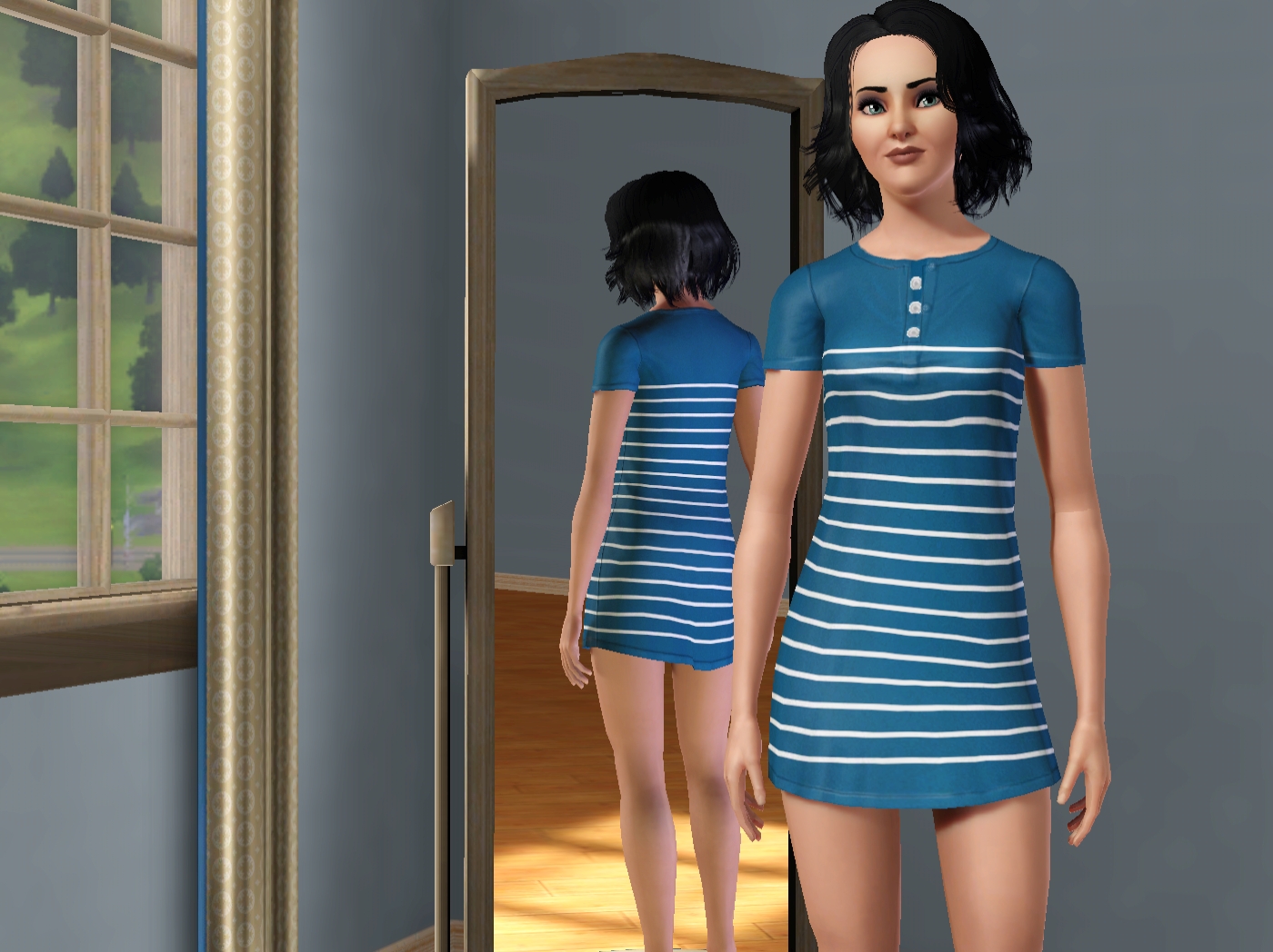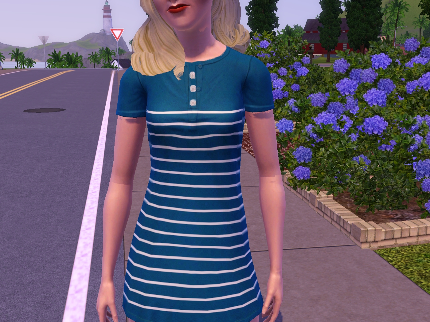 Well, in CAS the arms look pefect...there does seem to be a set of ghost buttons at the collar, but I'm not sure if you intended that or not...in game, there is some shadowing around the upper arms where the sleeves are, but the actual dress looks great..in fact the shadowing wouldn't bother me at all, so I'm not sure if its the dress causing that or the light, it is early morning, and in CAS there was no shadowing on the arms at all...