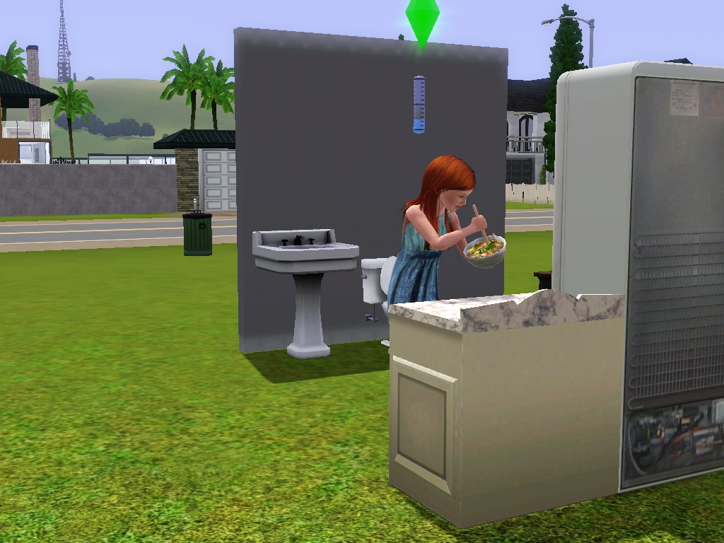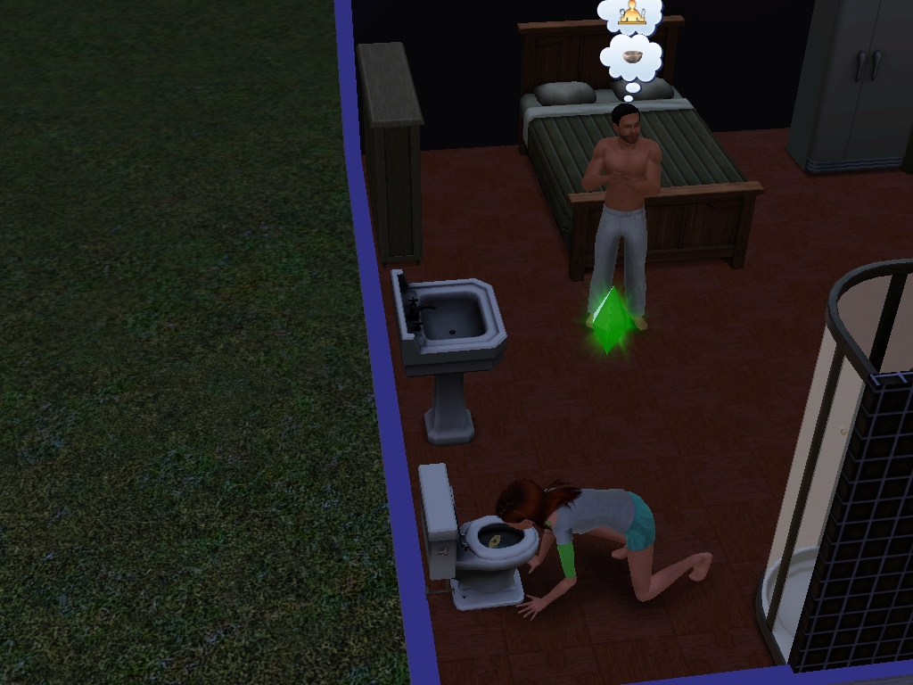 Yeah they don't actually have a seperate bathroom, but I figured meh, they're married they can deal for a few days it's not like they're going to see anything through the maxis pixels anyway.