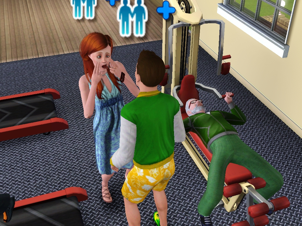 Sure I guess that matters too. *sigh* well as there aren't any other guys here other than the creppy old guy on the weights machine, off to the park! (note I have nothing against homosexual relationships I just need someone who can give us a kid otherwise this legacy is going to end really quickly.)