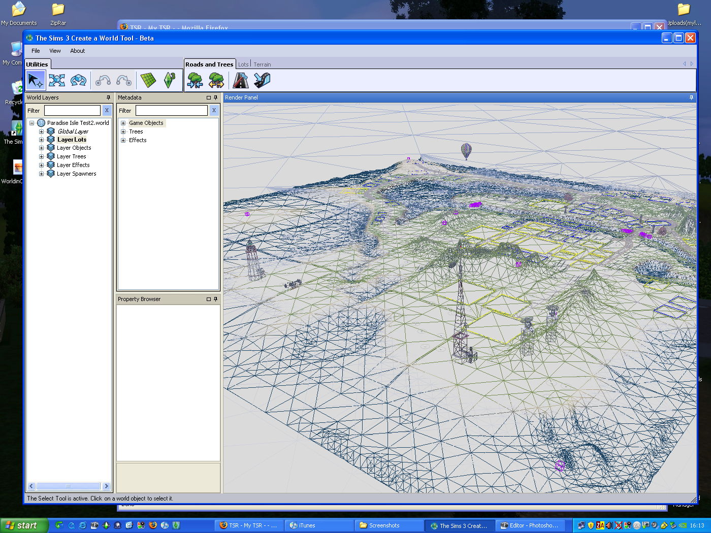 this is the most major one!! I have no idea what happened :-D!! All I can think of is that since my last blog, I adjusted the world, smoothed stuff out, deleted some lots, added a lot of spawners, so perhaps I've adjusted the road level somehow...I was hoping to just upload this version as a base game without any lots to keep the file small as it's only 18mb at the moment(which is about the same as some of the hair!). I haven't added any waves, well just one to see what it looked like, so I'm not sure if adding more will kick the size up or not...anyway, this is what it looks like so far in CAW...