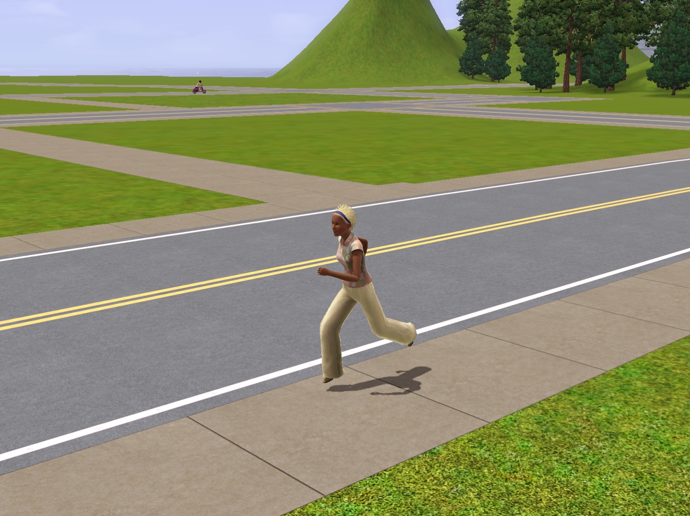 ...finally..after a few hours of frustration wondering why it was telling me I had no description, title or thumbnail :-D ...I uploaded it to my game, added my sim..and spent the next hour laughing my socks off...I haven't bothered painting in non routable areas, I thought I would go with the flow..they can't go in the sea or water, but it seems they can go up some amazingly steep hills! :-D