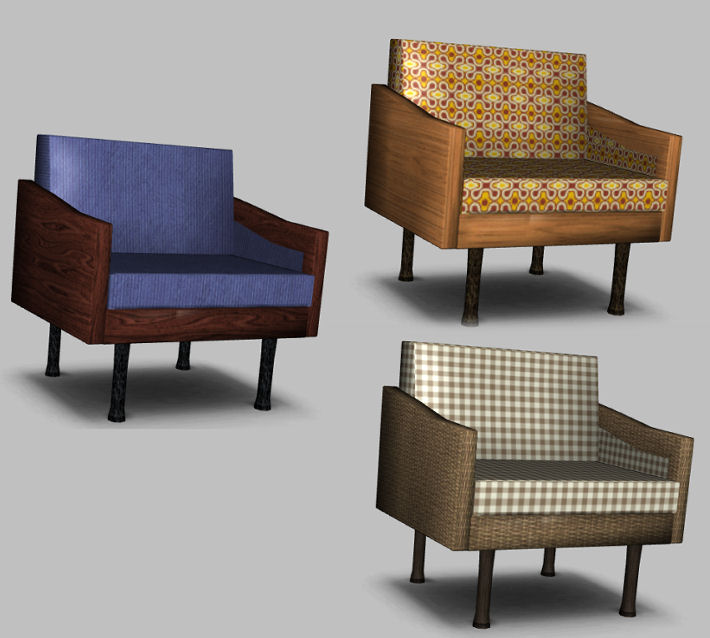 Just want to show you the living chair in the Retro set that I'm making, inspired by Paramiti's pics in her wishlist. Still working on the chair but here is a preview of it with the 3 variations.