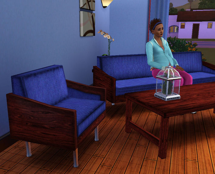 That's one of my test sims. I haven't been to her lot for a while and now she is pregnant. She is watching a drama on TV so she is a bit sad.