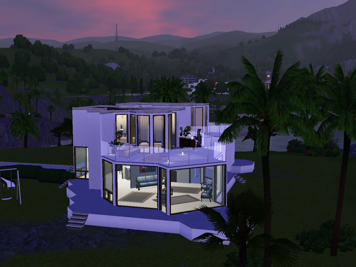 My current design concept is that it's possibly a palace or large residence from a technologically advanced culture from the past (or, future), most possibly from one of the twelve tribes of Cobol.  I'm integrating some advanced technology into it (like some wonderful anti-gravity properties available with Sims3 construction), as well as different architectural styles and philosophies.  Most interesting will be a sunrise and sunset cantilevered prayer rooms, intersecting the building at a 45 degree angle.  Here are some in-development photos....