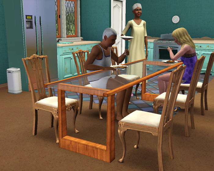 I was, I am going to do a bath but I have to study the meshes and files first so I decided to make a small diningroom set with the same style as the Ultra Modern (that isn't really Ultra) As there isn't a 2 tile diningtable with glass in game that I can use I had to make it a 3 tile table. Here is a first peek of it.