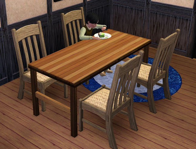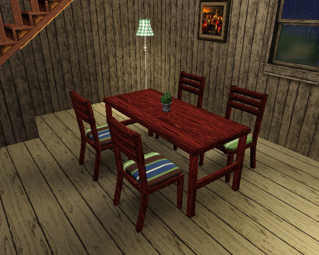 I have made some progress with the meshing and I've finished the table and the chair. Now it just needs some deco items maybe, then it's time to upload.