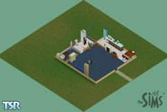 This house is a one story building for a single Sim. Every first time buyer can afford this house, because it costs only $14810. That's not much for a house! And there's even space for a larger house, because this house is in the middle of the lot. The house has one bedroom (with a bed, a mirror and a alarmclock in it), one bathroom (with a bad, a shower, a toilet and a washfacility with a mirror in it), a small kitchen and a nice livingroom witch is as large as the rest of the house.