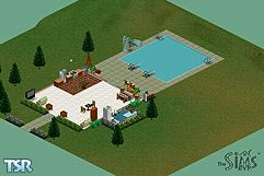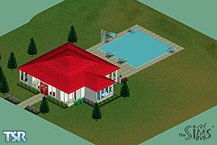 As the song says, "Darling, this place is a lover's oasis." A little cottage tucked away in the woods is perfect for your newlyweds, especially since these woods are located within easy commuting distance from Sim City. Like many former fishing shacks built on the Mississimmy River, this remodeled charmer features a basic one-room arrangement, but of course the bathroom is separate. Rustic furniture, a nice-sized pool, loads of fresh flowers, and practical aluminum siding will also please the discriminating pair. The pink and white shag carpet is the custom texture.
