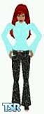 Dixie is wearing a sophisticated little number and is ready for a fun night out. Flared black sparkle pants that look beautiful in your game. Also an aqua toned top to match her lovely eyes. Light skin only. **Head included**