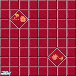 These bright red floor tiles with decorative flower tiles are part of the Lilian\'s Garden pool tile collection.