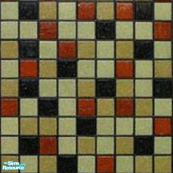Exotic multicolored marble mosaic tiles. Main colors include olive, red, and black. Part of the Piej Exotic Multicolor Marble Tile Collection. ($10)