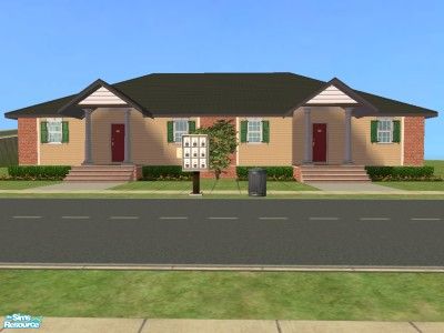 so open living is a double apartment, each apartment has 2br, 1 bath. they have basic convinces, bath, dishwasher. the lot can easily be changed to a residential with the changelot command. i included some outdoor decorations this time but i left the walls white.so that you may decorate them.