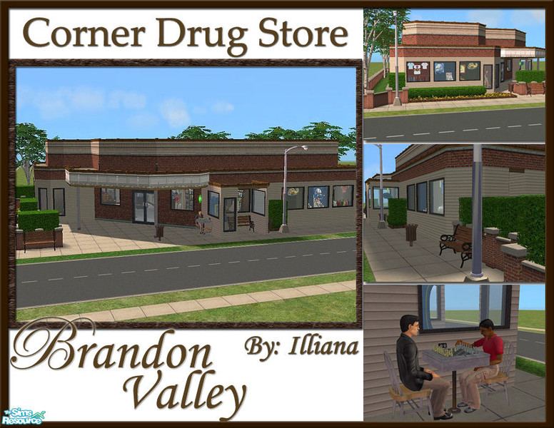 The Corner Drug Store has been there for as long as Brandon Valley residents can remember. Anything your sim needs can be found here. Groceries, clothes, games, a couple of pinball machines, a chessboard, and bathrooms for those emergency pitstops. No EPs needed - No Custom Content - Fully Tested!