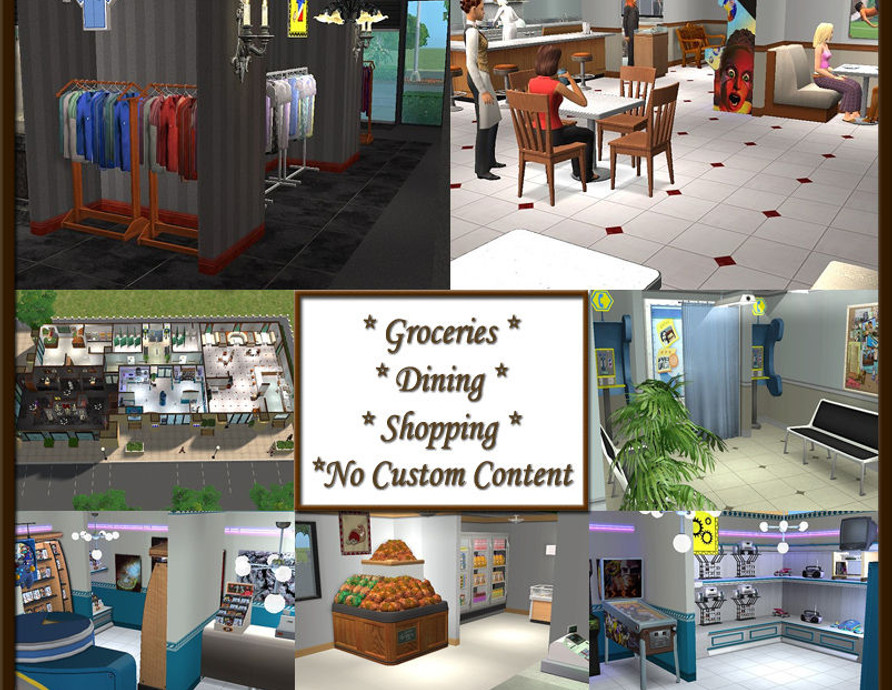 Your one stop source for your sims every need! Clothing, electronics, cafe, arcade games, groceries, magazines, video games, perfume, photobooth, bathrooms, and more! Fully tested - Maxis Only - Clean Pack Upload!