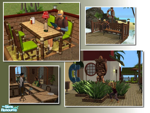Good food (seafood of course) and great entertainment are only a cab ride away. Your sims will love the Lighthouse Lounge for all their beachside needs. The first floor houses a bar and lounge area, as well as the kitchen. The second houses the bathroom and open air dining area. Maxis content only.