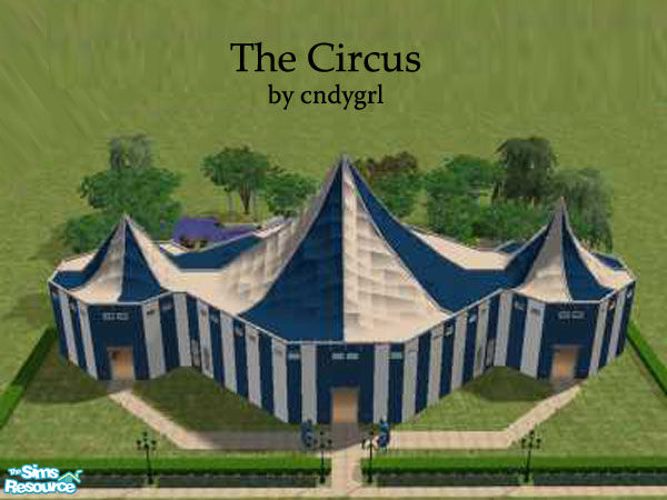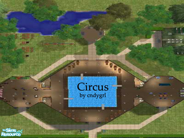 This circus-style building features an indoor pool, small general store and arcade. Outside, features a gazebo, swing set for the kiddies, and a picnic/bbq area. Let all your Sims know that the circus has finally come to town!