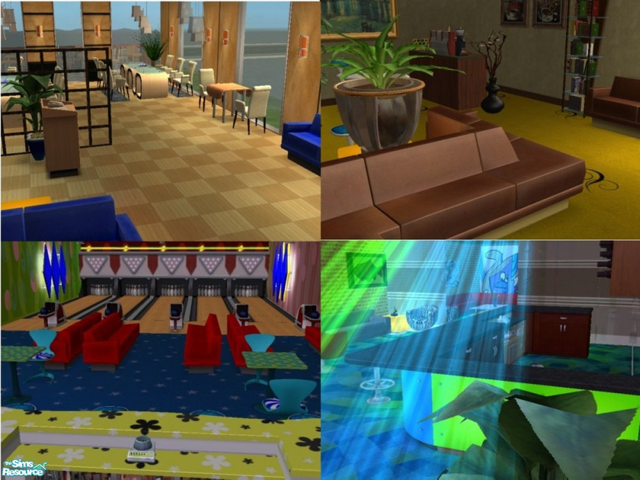 You'll find in this lot everything your Sim needs to have a blast on a night out in town. From a late night cup of Coffee to Fine Dinning to midnight bowling.