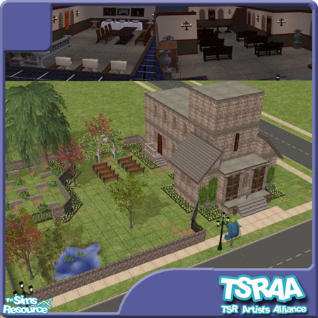 I'd noticed that while there were a decent amount of churches available to download, they were all monstrously big and complex. I like to send sims to community lots to get married, but the loading times for enormous lots are horrendous. So here's a nice, 2x2 lot that won't take years to load.