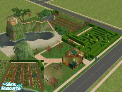 Here is a pleasant garden getaway for you sims to enjoy. Complete with a maze, a tranquil garden and a place for the children to play. The beach type setting of the lake and the overview of it make for a stunning place to relax. This was submitted for the garden competitions.