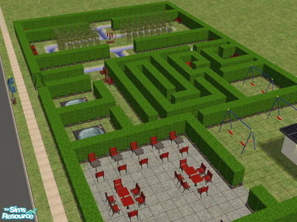 The perfect place for your sims to forget their troubles for a while. Features a water-lined walk where elders enjoy bird watching, a play maze and swing sets for kids, some hidden "hang-out" areas for your teens, cozy hottubs, plenty of restrooms, a picnic area, and chess tables.