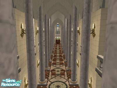 A wonderful cathedral with stained glass windows, high towers, interior columns, and most of all, arched walls! The ceiling inside the cathedral is arched, just like real gothic structures. Made using the "boolprop constrainfloorelevation false/true" code. Please rate! Thank you :D