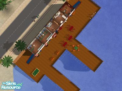 This is my first creation AND upload here, Hope it goes well. Anyways, This was created as a relaxtion outlet for your sims. As implyed, it's a borderwalk containing M/F restrooms, A place to eat, and a coffe shop that's NOT starbucks(sorry). There's also an upper floor look-out and two benches for comfort. (Note: This is best placed right in front of the ocean, preferably the bottom corner in bluewater map or anything with a high tide close to the road)