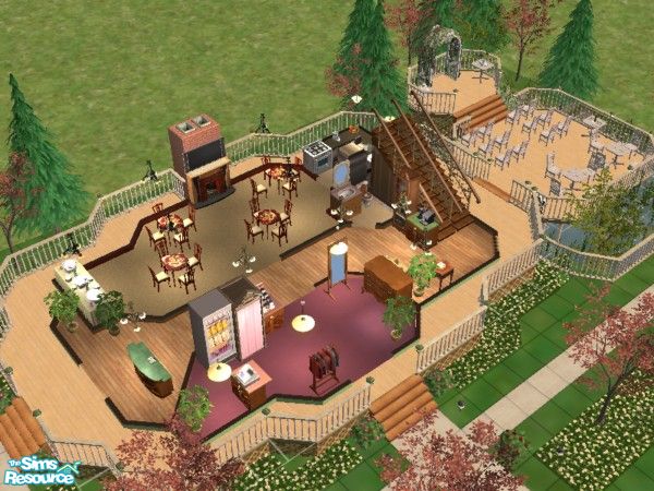 Pretty lot where sims can spend the weekend or come for the afternoon to shop, relax, or party.
