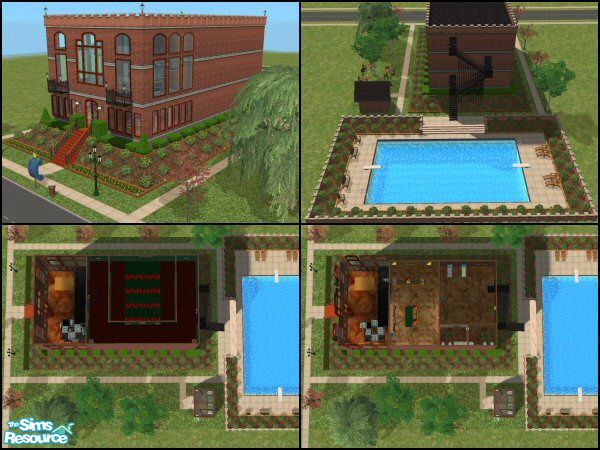This lot features a fine clothier, trendy media store, movie theater and a community pool. Other entertainments are located on the lot as well. Circular staircase. Okay ... I'll admit that I *may* have gotten a little extreme with the rose bushes. :P