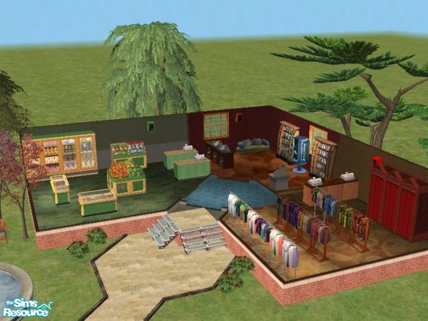 This quaint little plaza has all of your sim's shopping needs - in one small package! Have your children play on the swingset outside while you shop!