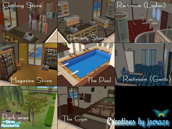 Note: For the punching bag & obstacle course, you may need to download the reward objects collection from Mod The Sims2.
