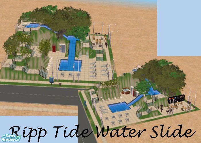 A Waterslide Done With Tiko\'s Tutorial. I Plan to Make More. With BBQ\'s. Vending Machines, Two Photobooths AND A Dressing Room For Woohoo. ;D If Anything Flashes Blue PLEASE Tell Me.