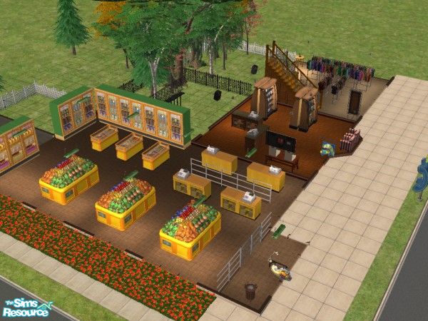 Featuring a supermarket, clothing boutique and video game store, this community hub will be the centre of activity for your Sim neighbourhood. (pair this lot with Sim Plaza 2 to completely satisfy all you sims shopping needs)