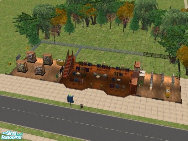 Featuring 2 clothing stores and video game shop, this community hub will be the centre of activity for your Sim neighbourhood. (Pair this lot with Sim Plaza 1 to completely satisfy all you sims shopping needs)