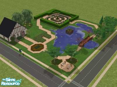 A formal garden with picturesque views nestled along a lake...