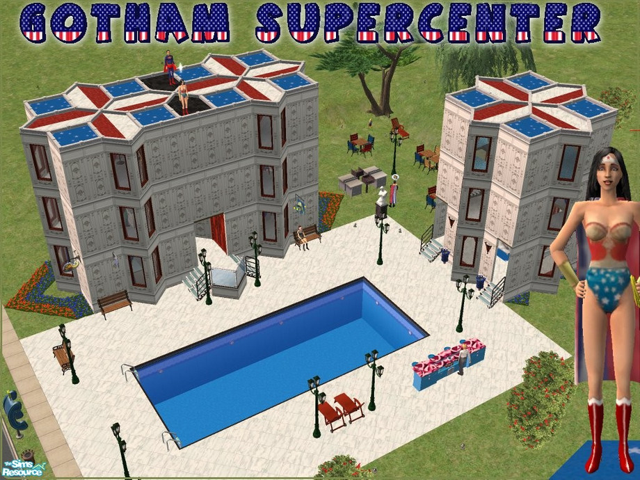 At the SuperCenter, Your Sim Heros can find all the goods they need to fight crime in the big city, a little public recognition, and even a Secret Sanctuary for Sims with a Special Ability [Teleport]. It can be used by all Sims.. Even Supervillains! Nightlife/University required. Sim not Included!