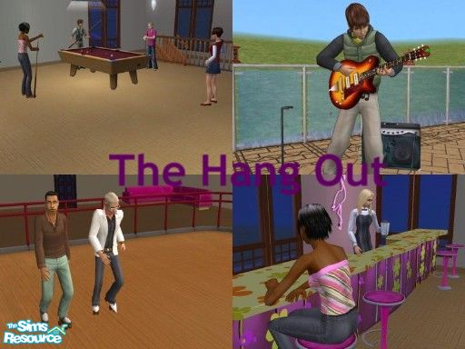 The Hang Out is a community lot which is designed as the ideal place for teenagers to spend time with their friends. It contains a roller-rink, pool tables, a bar, dancing area and a selection of instruments to allow sims to practice or impress their friends with their musical skills. Can also be used as a business with the addition of a ticket machine.