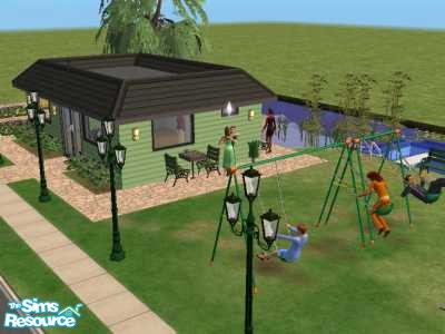 Shop for food, pick up a new swimsuit and take a dip in the river. Sims of all ages seem to prefer the swings though. Place next to other lots with water and willows to see a river/lake on the neighbourhood map. Loads fast. Ever tried hiding a pool in a river? not easy... tips welcome