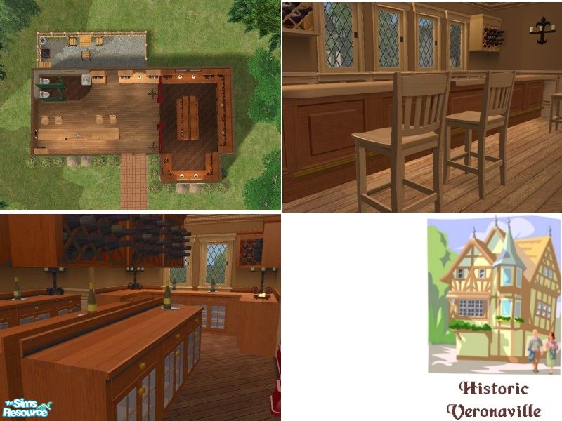 This small wine shop can be purchased as a business [for $57,378] or used as a community lot. Part of the Historic Veronaville project. Game tested, Sim approved. You may not require 'Nightlife" or 'Open for Business' to install this lot, but it definately uses objects from "University".