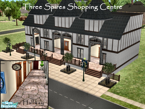 This is my first upload to this site, even though I've been downloading from it for years. I got sick of having to go several different community lots to get everything I needed for my Sims so I created a small lot which had all the necessary stores. Three Spires includes a Electronic Games store, a hairdressers, a grocery store, a clothes store, a restaurant and public toilets. Hope you enjoy.