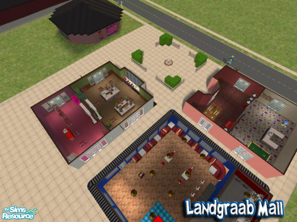 It's back from TheSims Hot Date! Landgraab Mall has a restaurant, flower shop, clothing shop, and toy/candy shop! Let your TS2 sims visit an awesome TS1 location today!