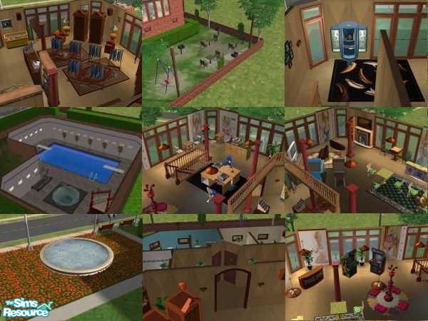 Introducing my only community lot! :D It's a modest one, really, with a gym, spa, and swimming pool in the basement, a clothing and mini-grocery shop on the first floor (with a shower in each restroom after your Sim's worked up a sweat exercising), and on the second floor, it's fun time for your Sim, plus bars galore of drinks and expresso! Outside, your Sim can have a nice little meal, and just relax on the swing. Those wall murals of that beautiful blonde upstairs are from my Mandy Murals Collection, courtesy of Dean Yeagle, available here at TSR! Notes: Hack-free. User-content rugs are from Windkeeper/Echo. You must also have University to get the full use of this lot. Enjoy!