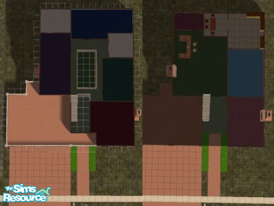 A two-storey house with a two-car garage and roof garden. One bathroom on the main floor, with two more on the upper level as well as 4 bedrooms. Bathrooms are decorated with s00z's Seeds Tile Sets and additional wall tiles included are from Turkey Hill Paint Collection found at modthesims2.com.