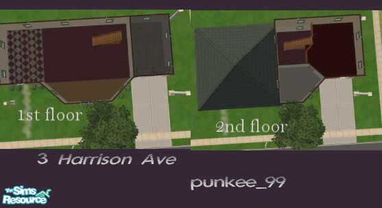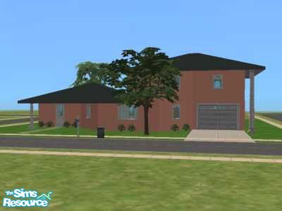 A small house good for one sim or a couple. Stairs lead to a bedroom over the garage that overlooks part of the first floor.