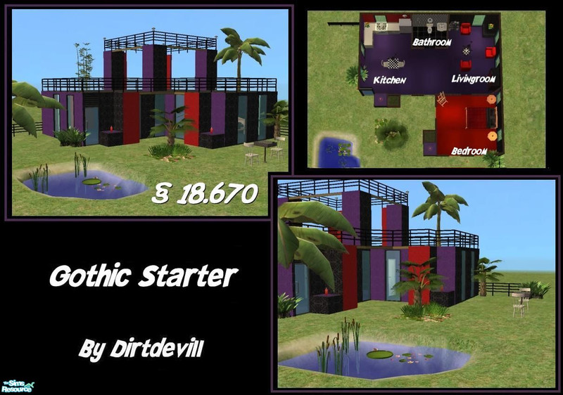 A Modern & collorful place to live on a 2x2 lot. It\'s furnitured and decorated with purple, black and grey collors. There\'s a kitchen - a spacious livingroom - 1 master bedroom - skill building material- and outside is a cosey garden with a little pond. I left you some money to buy whatever you want.