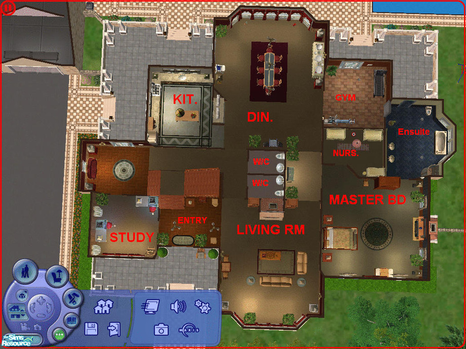 This stately home is ideal for a large (and loaded) family. The second floor contains 2 full bathrooms, 4 kids bedrooms (2 for girls, 2 for boys) and a bonus room. The interior is a mix of modern and traditional. The outdoor entertaining area has both a pool and spa, along with a BBQ area and bar. I usually put cribs in the rooms kids will later have, but I know a lot of people prefer a nursery so I halved the size of the Gym and made a little nursery adjoining the Master suite to make it easier for grumpy sims who have to get up in the middle of the night. There was heaps of space in the roof so I added an attic. Feedback is always welcome.