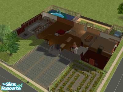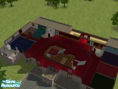 This house has been quite a challenge, it was requested by blackdragonlady for a vampire family, so that is why I didn't use very many windows on this house. Has a bowling alley on top floor with lots of room for other games & reward items. Very sparsely furnished, was trying to keep cost down as much as possible. I really hope you like it.
