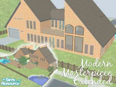 This is the residential lot, moderen masterpiece which comes with the game. I\'ve extended the house to add a garage, a few more bedrooms, bathrooms and a larger living space. The garden has also been decorated with the additions of a greenhouse and pool, it\'s now a modern family home.
